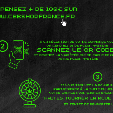 Tentez de gagner de nombreux lots avec CBD Shop France des 100€ de d’achat sur la boutique en ligne. Le jeu de CBD Shop France est simple. Il se compose de cinq étapes. vous dépensez +100€ pour recevoir votre ticket d’entrée ( 1 gramme de fleur mystère) . Vous devez flasher le QR code liée …